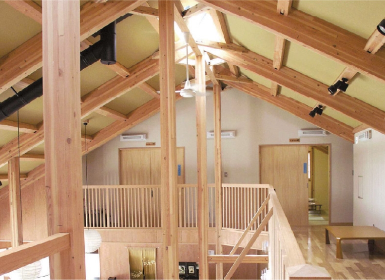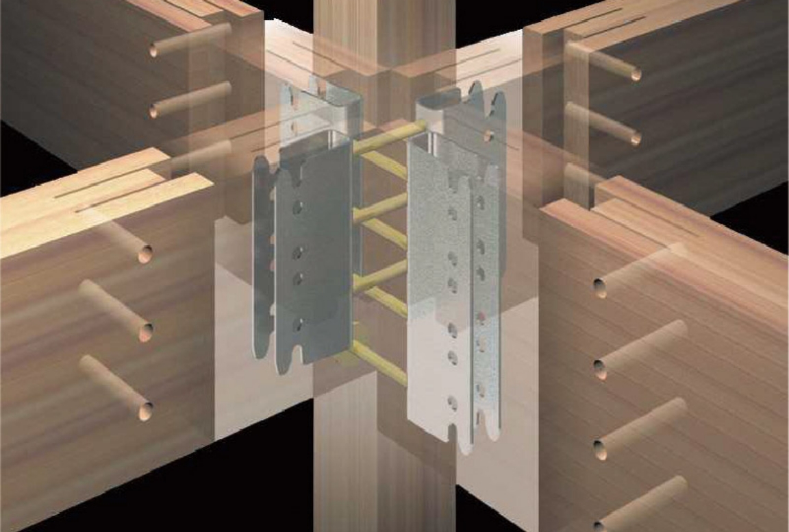 在来工法に比べて、木材の欠損が大幅に少ないことが大きな特長。木材自身の強度の下を抑えることができます。
