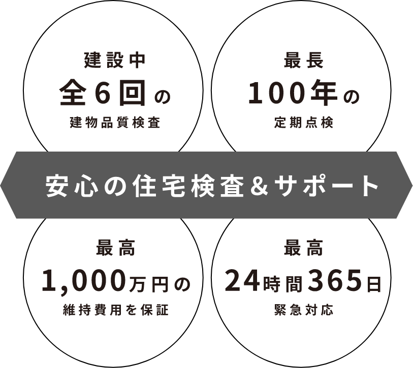 どんな住まいでも年月とともに傷み具合も進行していくもの。永く暮らす住まいだからこそ、 第三者によるプロの目でチェックし、建てるときはもちろん、建てた後も長期的に家を見守り住まいの価値を維持するためのメンテナンスが重要なのです。