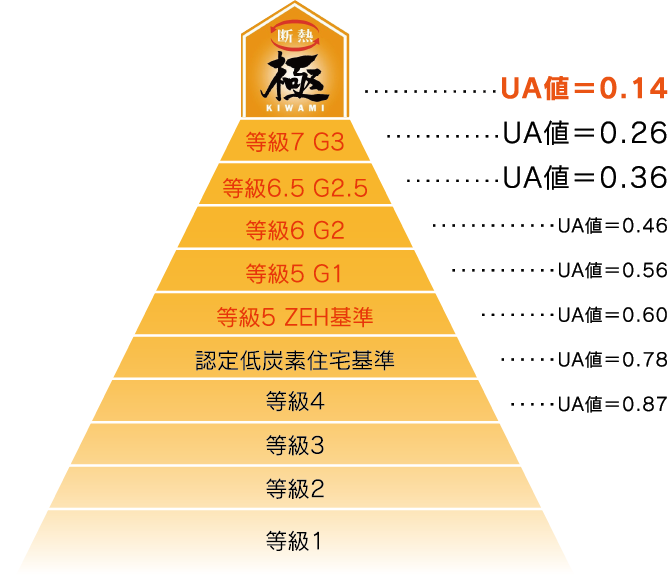 SUMAIでは「必要十分な性能を、最初からしっかり備える」ことを大切にし、断熱性能の高い家づくりを行っています。なかでも、国内最高水準のUA値0.14以下を目指す「断熱〈極(KIWAMI)〉」仕様は、北海道レベルの寒冷地にも対応可能。高性能な断熱材と施工技術により、快適性と省エネ性の両立を実現しています。